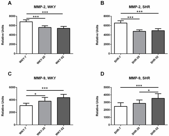 Kollarova, M.; Puzserova, A.; Balis, P.; Radosinska, D.; Tothova, L.; Bartekova, M.; Barancik, M.; Radosinska, J. Age- and Phenotype-Dependent Changes in Circulating MMP-2 and MMP-9 Activities in Normotensive and Hypertensive Rats. Int. J. Mol. Sci. 2020, 21, 7286. https://doi.org/10.3390/ijms21197286