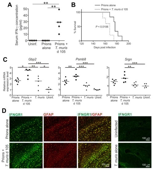 - Donaldson, D.S.; Bradford, B.M.; Else, K.J.; Mabbott, N.A. Accelerated onset of CNS prion disease in mice co-infected with a gastrointestinal helminth pathogen during the preclincal phase. Sci. Rep. 2020, 10, 4554. [Google Scholar] [CrossRef] [PubMed]