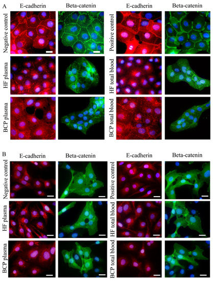2.5. The Morphology of E-Cadherin and β-Catenin-Based Adherence Junctions (AJs) in Tumor Cells after Treatment by Exosomes