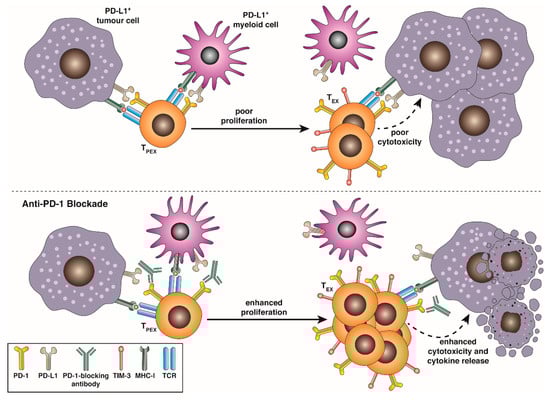 Tumour cells, tumour-associated macrophages, infiltrating myeloid-derived suppressor cells and, in the liver, infected hepatocytes [157] have all been shown to express an array of ligands for co-inhibitory receptors borne by exhausted cells. These ligand:receptor interactions are key in dampening TCR- mediated and co-stimulatory signalling and imposing T cell dysfunction in situ, and targeted blockade of these interactions has revolutionised our approach to cancer therapy.