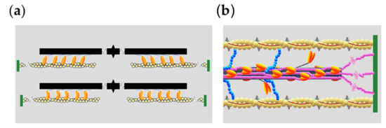 - Craig, R.; Offer, G. Axial arrangement of crossbridges in thick filaments of vertebrate skeletal muscle. J. Mol. Biol. 1976, 102, 325–332. [Google Scholar] [CrossRef]