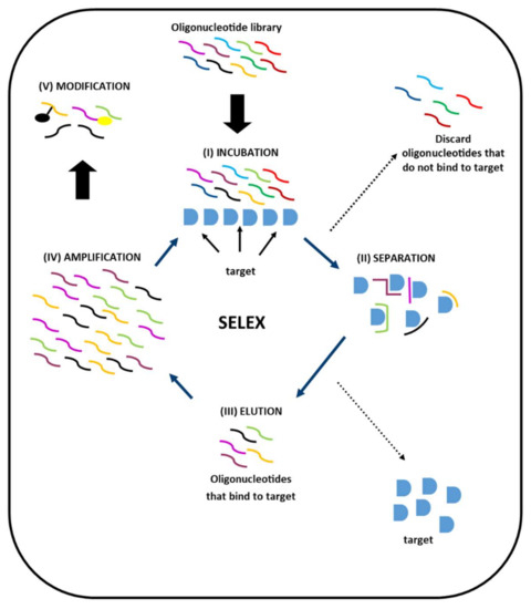 - Stoltenburg, R.; Reinemann, C.; Strehlitz, B. SELEX—A (r)evolutionary method to generate high-affinity nucleic acid ligands. Biomol. Eng. 2007, 24, 381–403. [Google Scholar] [CrossRef] [PubMed]