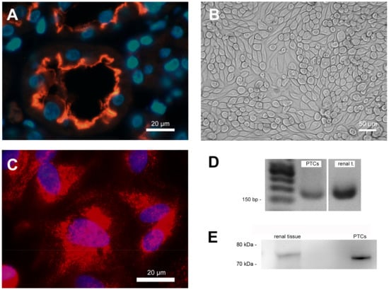 - Baer, P.C.; Bereiter-Hahn, J.; Schubert, R.; Geiger, H. Differentiation status of human renal proximal and distal tubular epithelial cells in vitro: Differential expression of characteristic markers. Cells Tissues Organs 2006, 184, 16–22. [Google Scholar] [CrossRef]