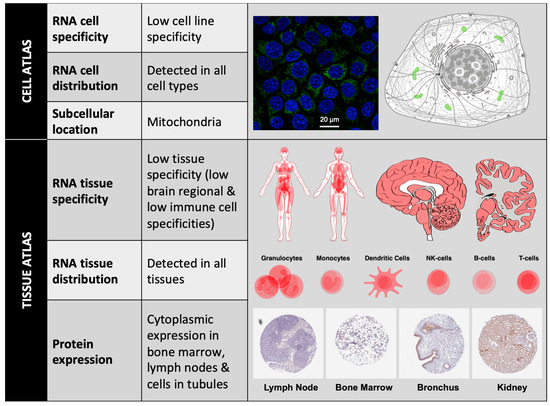 According to The Human Protein Atlas (https://www.proteinatlas.org), at the cellular level, BCL-xL has low RNA cell specificity, as it can be detected in several cell lines such as Caco-2 (colon cancer), MCF7 (mammary gland cancer), HeLa (breast cancer), A549 (lung cancer), etc. In all these cell lines, intracellular localization of BCL-xL protein is mainly in the mitochondria. At the tissue level, BCL-xL has low RNA tissue specificity but the consensus Normalized eXpression (NX) dataset, created as a combination from the three transcriptomics datasets (HPA, GTEx, and FANTOM5), depicts a slight overexpression in bone marrow and thymus. BCL-xL protein levels can be detected in low-medium score in a few tissues, including bone marrow, lymph node, brain, and cells in tubules (Figure 2).