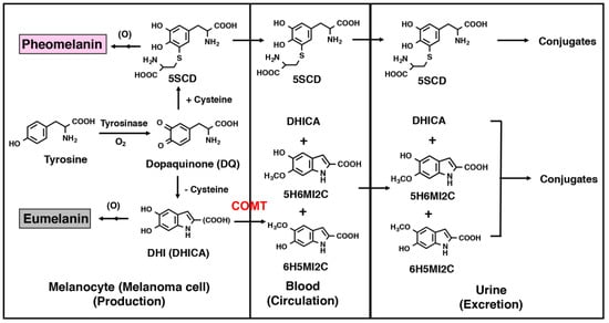 Wakamatsu, K.; Fukushima, S.; Minagawa, A.; Omodaka, T.; Hida, T.; Hatta, N.; Takata, M.; Uhara, H.; Okuyama, R.; Ihn, H. Significance of 5-S-Cysteinyldopa as a Marker for Melanoma. Int. J. Mol. Sci. 2020, 21, 432. https://doi.org/10.3390/ijms21020432