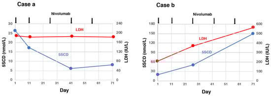 - Wagner, N.B.; Forschner, A.; Leiter, U.; Garbe, C.; Eigentler, T.K. S100B and LDH as early prognostic markers for response and overall survival in melanoma patients treated with anti-PD-1 or combined anti-PD-1 plus anti-CTLA-4 antibodies. Br. J. Cancer 2018, 119, 339–346. [Google Scholar] [CrossRef] [PubMed]