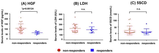 - Kubo, Y.; Fukushima, S.; Inamori, Y.; Tsuruta, M.; Egashira, S.; Yamada-Kanazawa, S.; Nakahara, S.; Tokuzumi, A.; Miyashita, A.; Aoi, J.; et al. Serum concentrations of HGF are correlated with response to anti-PD-1 antibody therapy in patients with metastatic melanoma. J. Dermatol. Sci. 2019, 93, 33–40. [Google Scholar] [CrossRef]