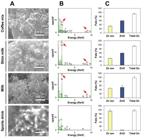 Jeon, Y.-R.; Yu, J.; Choi, S.-J. Fate Determination of ZnO in Commercial Foods and Human Intestinal Cells. Int. J. Mol. Sci. 2020, 21, 433. https://doi.org/10.3390/ijms21020433