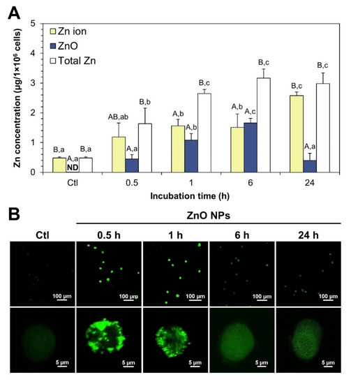 Chicago/Turabian StyleJeon, Ye-Rin, Jin Yu, and Soo-Jin Choi. 2020. "Fate Determination of ZnO in Commercial Foods and Human Intestinal Cells" International Journal of Molecular Sciences 21, no. 2: 433. https://doi.org/10.3390/ijms21020433
