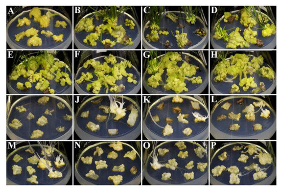 - Bakhshaie, M.; Babalar, M.; Mirmasoumi, M.; Khalighi, A. Somatic embryogenesis and plant regeneration of Lilium ledebourii (Baker) Boiss., an endangered species. Plant Cell Tissue Organ Cult. 2010, 102, 229–235. [Google Scholar] [CrossRef]