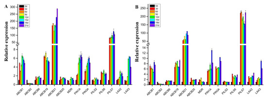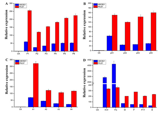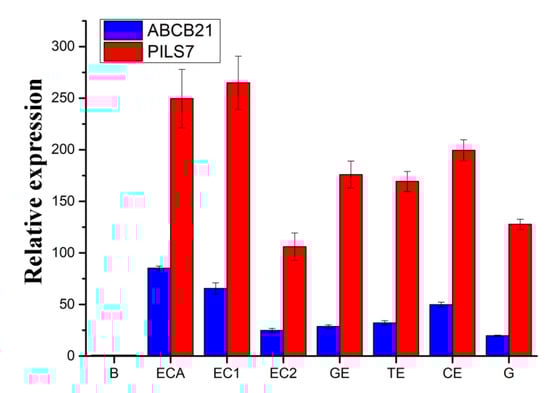 - Yue, R.; Tie, S.; Sun, T.; Zhang, L.; Yang, Y.; Qi, J.; Yan, S.; Han, X.; Wang, H.; Shen, C. Genome-wide identification and expression profiling analysis of ZmPIN, ZmPILS, ZmLAX and ZmABCB auxin transporter gene families in maize (Zea mays L.) under various abiotic stresses. PLoS ONE 2015, 10, e0118751. [Google Scholar] [CrossRef]