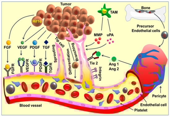 - Hanahan, D.; Folkman, J. Patterns and Emerging Mechanisms of the Angiogenic Switch during Tumorigenesis. Cell 1996, 86, 353–364. [Google Scholar] [CrossRef]