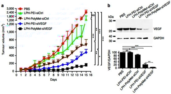 - Chen, J.; Sun, X.; Shao, R.; Xu, Y.; Gao, J.-Q.; Liang, W.-Q. VEGF siRNA delivered by polycation liposome-encapsulated calcium phosphate nanoparticles for tumor angiogenesis inhibition in breast cancer. Int. J. Nanomed. 2017, 12, 6075–6088. [Google Scholar] [CrossRef]