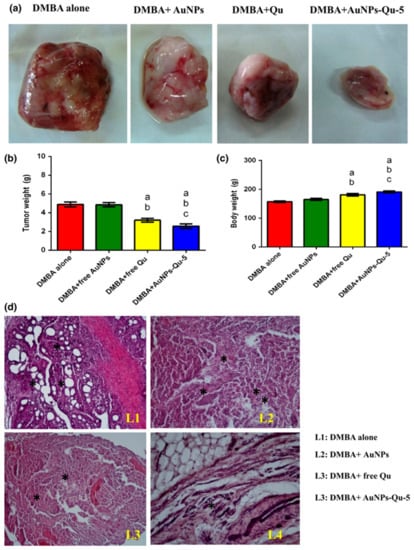 - Balakrishnan, S.; Mukherjee, S.; Das, S.; Bhat, F.A.; Raja Singh, P.; Patra, C.R.; Arunakaran, J. Gold nanoparticles-conjugated quercetin induces apoptosis via inhibition of EGFR/PI3K/Akt-mediated pathway in breast cancer cell lines (MCF-7 and MDA-MB-231). Cell Biochem. Funct. 2017, 35, 217–231. [Google Scholar] [CrossRef]