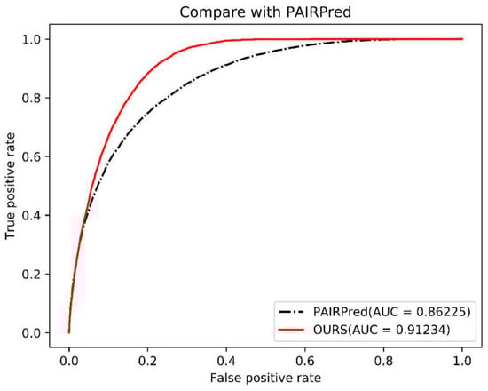 To further evaluate our model, we compared its performance with those of PSIVER [35], PPiPP [48], SSWRF [54], DLPred [19], and PAIRPred [24] using AUC scores (Table 3). The first four methods used sequence-based features, while PAIRPred and our method used both sequence- and structure-based features. The AUC score of our method is noteworthily higher than that of the other methods. The results also prove the importance of structural features in PPIs site prediction.
