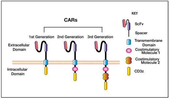 - Weinkove, R.; George, P.; Dasyam, N.; McLellan, A.D. Selecting costimulatory domains for chimeric antigen receptors: functional and clinical considerations. Clin. Transl. Immunol. 2019, 8, e1049. [Google Scholar] [CrossRef] [PubMed]
