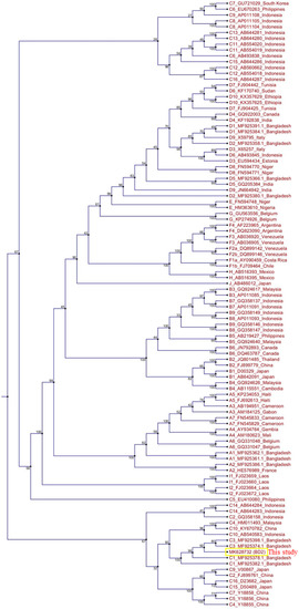 - Shaha, M.; Hoque, S.A.; Rahman, S.R. Molecular epidemiology of hepatitis B virus isolated from Bangladesh. SpringerPlus 2016, 5, 1513. [Google Scholar] [CrossRef]