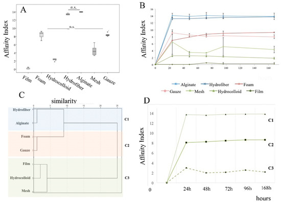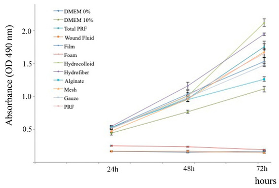 2.3. Affinity for PRF Differed Depending on Wound Dressing Composition