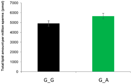 Total lipid amount of 106 sperms of each genotype revealed no significant difference after normalization. G_G: wild type; G_A: heterozygous carrier.