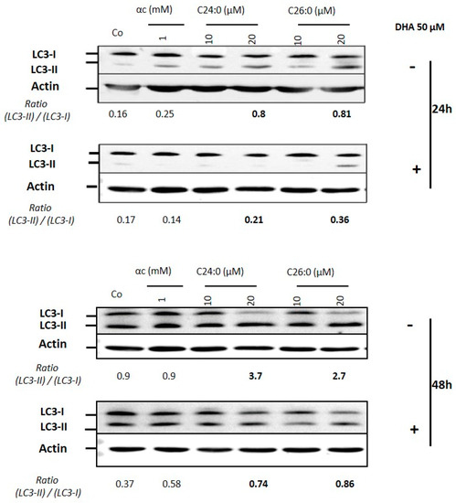 - Doria, M.; Nury, T.; Delmas, D.; Moreau, T.; Lizard, G.; Vejux, A. Protective function of autophagy during VLCFA-induced cytotoxicity in a neurodegenerative cell model. Free Radic. Biol. Med. 2019, 137, 46–58. [Google Scholar] [CrossRef] [PubMed]