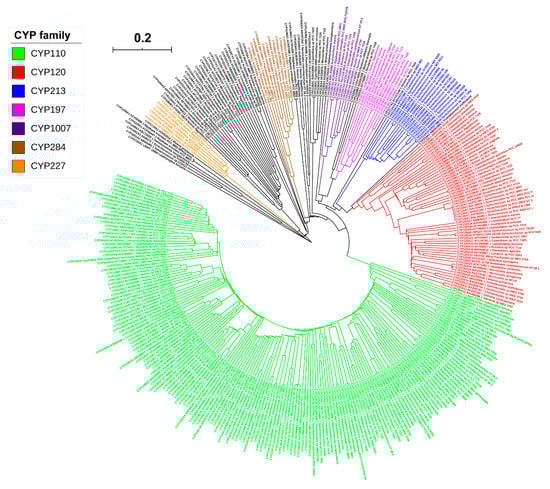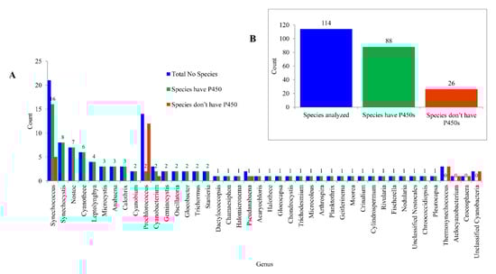 2.2. CYP110 is the Dominant P450 Family in Cyanobacterial Species