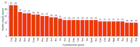 2.4. Cyanobacterial Species Has Highest Gene Cluster Diversity Percentage Compared to Bacillus and Mycobacterial Species