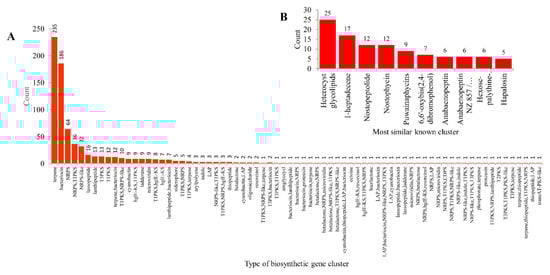 - Blin, K.; Shaw, S.; Steinke, K.; Villebro, R.; Ziemert, N.; Lee, S.Y.; Medema, M.H.; Weber, T. antiSMASH 5.0: Updates to the secondary metabolite genome mining pipeline. Nucleic Acids Res. 2019, 47, W81–W87. [Google Scholar] [CrossRef]