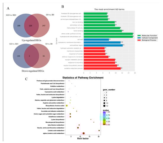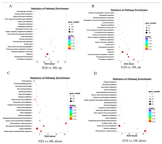 2.7. Expression Patterns and DEGs in G24 vs. H24 Groups