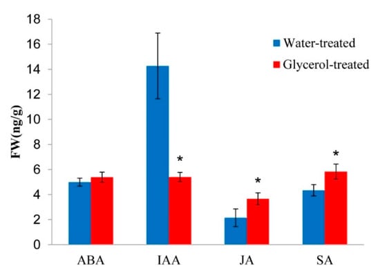 2.8. Plant Hormones Cross-Talk in Response to Glycerol Application