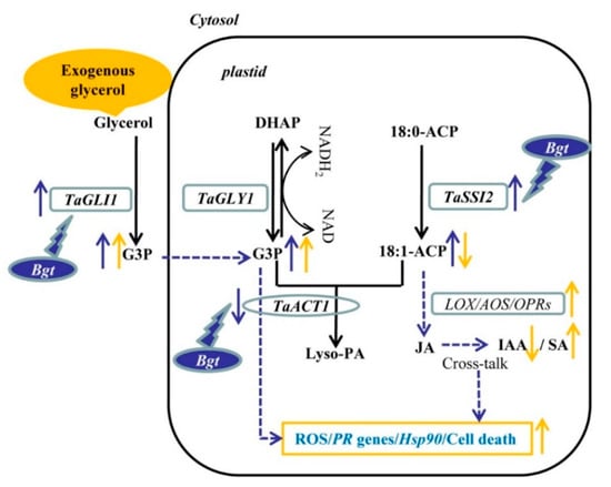 - Yang, Y.; Zhao, J.; Liu, P.; Xing, H.; Li, C.; Wei, G.; Kang, Z. Glycerol-3-phosphate metabolism in wheat contributes to systemic acquired resistance against Puccinia striiformis f. sp. tritici. PLoS ONE 2013, 8, e81756. [Google Scholar] [CrossRef]