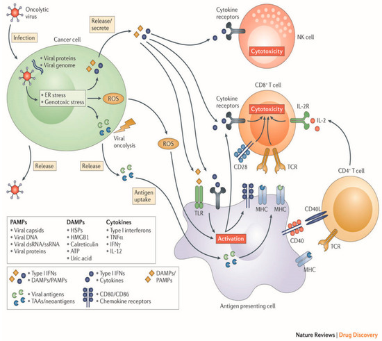 - Lichty, B.D.; Breitbach, C.J.; Stojdl, D.F.; Bell, J.C. Going viral with cancer immunotherapy. Nat. Rev. Cancer 2014, 14, 559–567. [Google Scholar] [CrossRef] [PubMed]