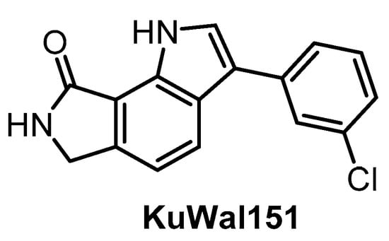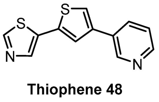 - Schmitt, C.; Kail, D.; Mariano, M.; Empting, M.; Weber, N.; Paul, T.; Hartmann, R.W.; Engel, M. Design and Synthesis of a Library of Lead-Like 2,4-Bisheterocyclic Substituted Thiophenes as Selective Dyrk/Clk Inhibitors. PLoS ONE 2014, 9, e87851. [Google Scholar] [CrossRef]