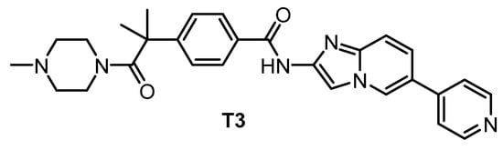 | T3 [135,148] | 0.67 | 15 | 110 | ND | 260 | 230 | ND | inactive | inactive | ND | - | 71 kinases |