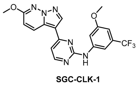 - SGC-CLK-1. A Chemical Probe for CLK1, CLK2, and CLK4. SGC Chem. Probes. Available online: https://www.thesgc.org/chemical-probes/SGC-CLK-1 (accessed on 12 October 2020).