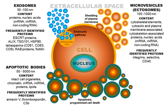 - Raposo, G.; Stoorvogel, W. Extracellular vesicles: Exosomes, microvesicles, and friends. J. Cell Biol. 2013, 200, 373–383. [Google Scholar] [CrossRef]