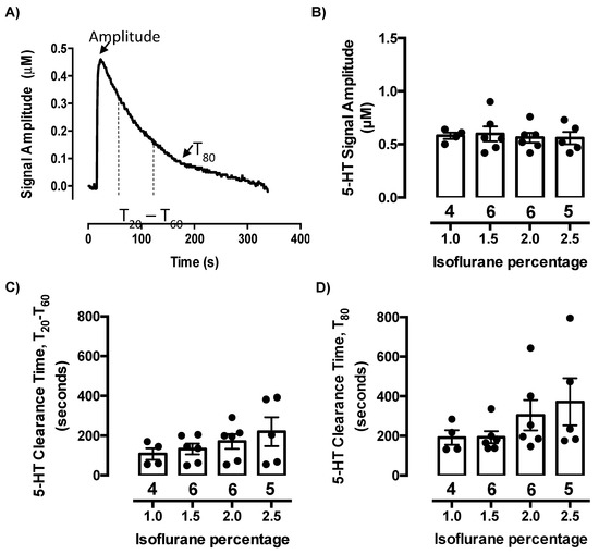 4.3. Effects of Isoflurane on Serotonin Clearance