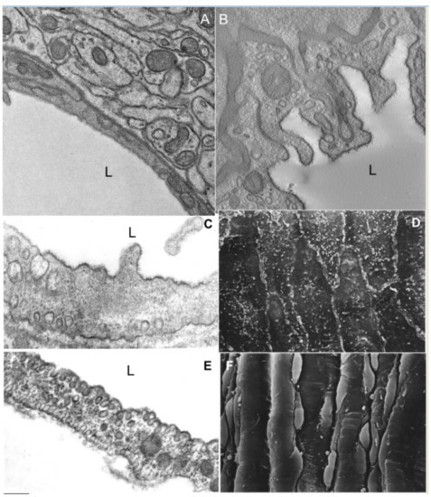 - Sauvanet, C.; Wayt, J.; Pelaseyed, T.; Bretscher, A. Structure, regulation, and functional diversity of microvilli on the apical domain of epithelial cells. Annu. Rev. Cell Dev. Biol. 2015, 31, 593–621. [Google Scholar] [CrossRef]