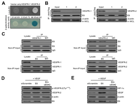 2.3. HPV16 E6 Directly Binds with VEGFR-2 but Not VEGFR-1