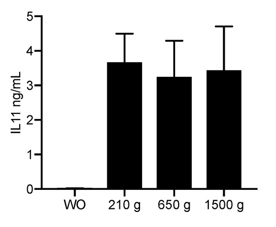 2.2. PRF Lysates Prepared at 210 g, 650 g and 1500 g Caused an Equal Production of IL11 Protein