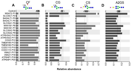 We focused our studies on CDGs featuring an abnormal N-glycosylation [60] and analyzed (protein-specific) glycosylation derived from the circulation. Therefore, the current work excludes the possibility to assess genetic defects of tissue-specifically expressed glycosyltransferases. Furthermore, gene defects exclusively affecting any other type of glycosylation than N-glycosylation were not covered.