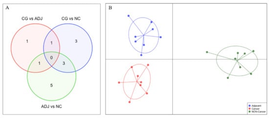 - Pereira, A.; Moreira, F.; Vinasco-Sandoval, T.; Cunha, A.; Vidal, A.; Ribeiro-dos-Santos, A.M.; Pinto, P.; Magalhães, L.; Assumpção, M.; Demachki, S.; et al. miRNome Reveals New Insights Into the Molecular Biology of Field Cancerization in Gastric Cancer. Front. Genet. 2019, 10. [Google Scholar] [CrossRef] [PubMed]