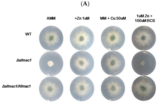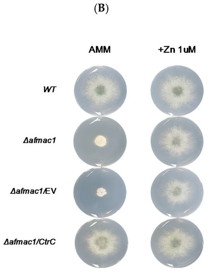 2.1. Growth Defect of the Δafmac1 Strain was Recovered by Zinc Starvation