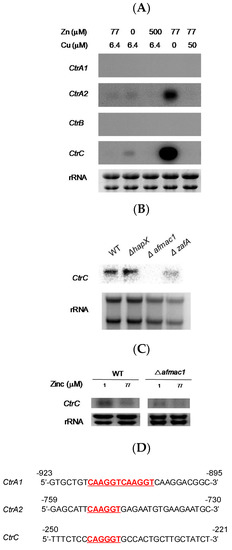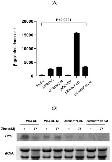 2.3. ZafA Regulates the Expression of Ctr Genes via the ZafA Binding Motif