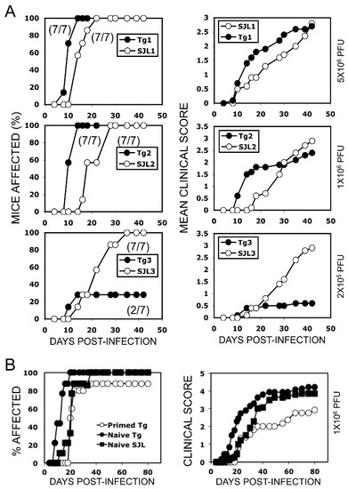 2.2. Histopathologic Examinations of the SJL Mice and VP2-TCR-Tg Mice Infected with TMEV
