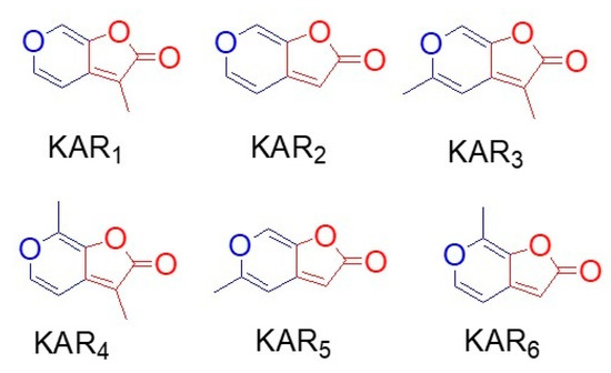 - Flematti, G.R.; Ghisalberti, E.L.; Dixon, K.W.; Trengove, R.D. Synthesis of the seed germination stimulant 3-methyl-2H-furo[2,3-c] pyran-2-one. Tetrahedron Lett. 2005, 46, 5719–5721. [Google Scholar] [CrossRef]
