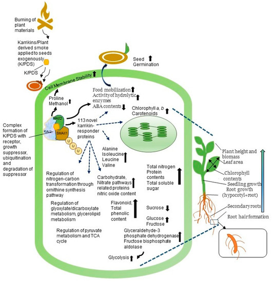 Khatoon, A.; Rehman, S.U.; Aslam, M.M.; Jamil, M.; Komatsu, S. Plant-Derived Smoke Affects Biochemical Mechanism on Plant Growth and Seed Germination. Int. J. Mol. Sci. 2020, 21, 7760. https://doi.org/10.3390/ijms21207760