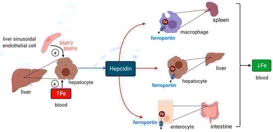 - Wang, H.; Li, H.; Jiang, X.; Shi, W.; Shen, Z.; Li, M. Hepcidin Is Directly Regulated by Insulin and Plays an Important Role in Iron Overload in Streptozotocin-Induced Diabetic Rats. Diabetes 2014, 63, 1506–1518. [Google Scholar] [CrossRef]