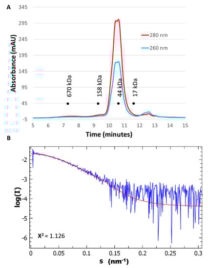 - Franke, D.; Petoukhov, M.V.; Konarev, P.V.; Panjkovich, A.; Tuukkanen, A.; Mertens, H.D.T.; Kikhney, A.G.; Hajizadeh, N.R.; Franklin, J.M.; Jeffries, C.M.; et al. ATSAS 2.8: A comprehensive data analysis suite for small-angle scattering from macromolecular solutions. J. Appl. Crystallogr. 2017, 50, 1212–1225. [Google Scholar] [CrossRef]