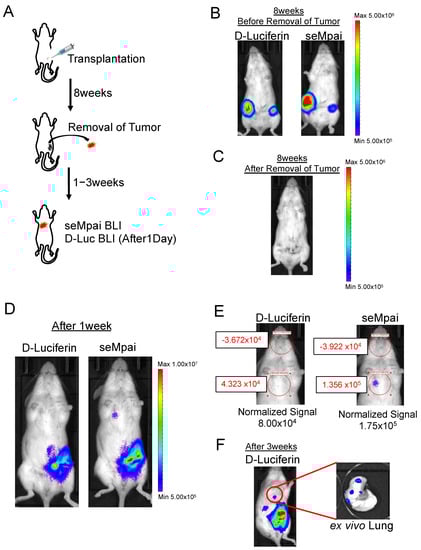 Nakayama, J.; Saito, R.; Hayashi, Y.; Kitada, N.; Tamaki, S.; Han, Y.; Semba, K.; Maki, S.A. High Sensitivity In Vivo Imaging of Cancer Metastasis Using a Near-Infrared Luciferin Analogue seMpai. Int. J. Mol. Sci. 2020, 21, 7896. https://doi.org/10.3390/ijms21217896