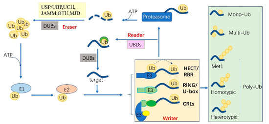 - Oh, E.; Akopian, D.; Rape, M. Principles of ubiquitin-dependent signaling. Annu. Rev. Cell Dev. Biol. 2018, 34, 137–162. [Google Scholar] [CrossRef] [PubMed]